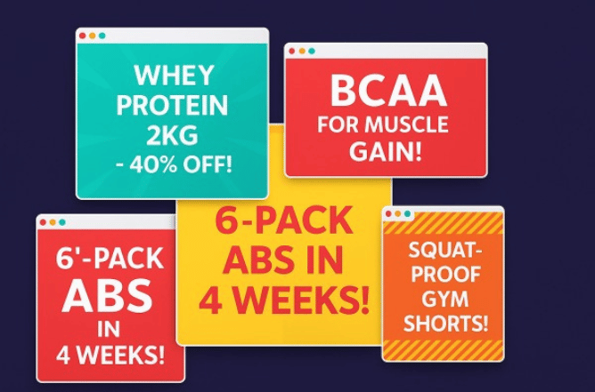 Eye-catching banners on websites and apps you visit. They retarget you based on past behavior, like those protein deals popping up again.